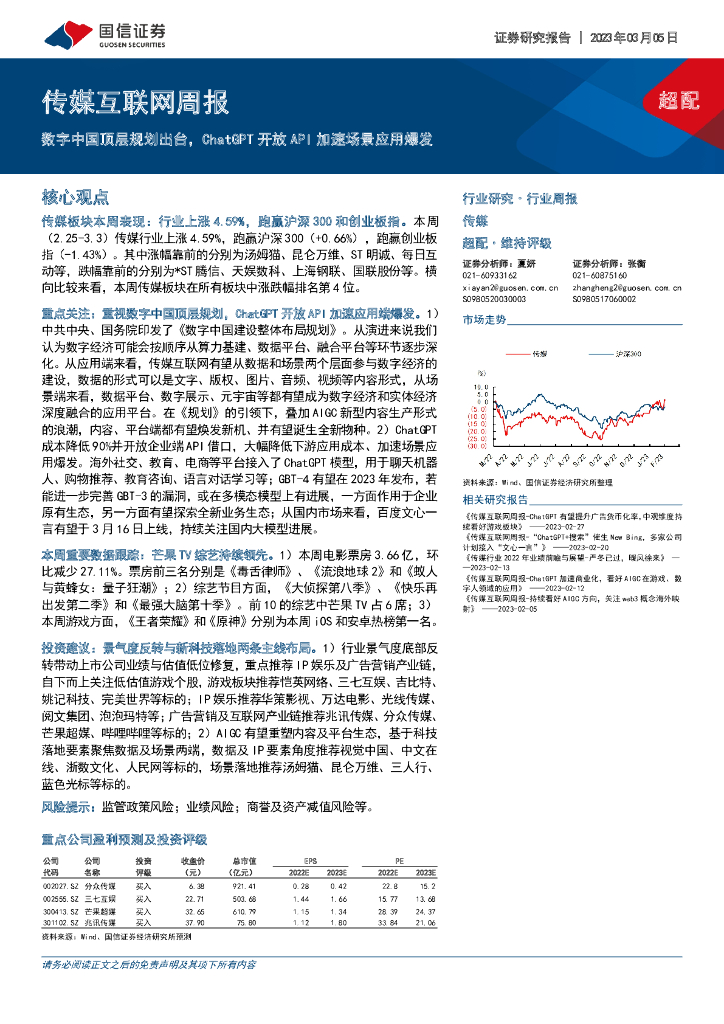 国信证券:传媒互联网周报:数字中国顶层规划出台,ChatGPT开放API加速场景应用爆发.pdf