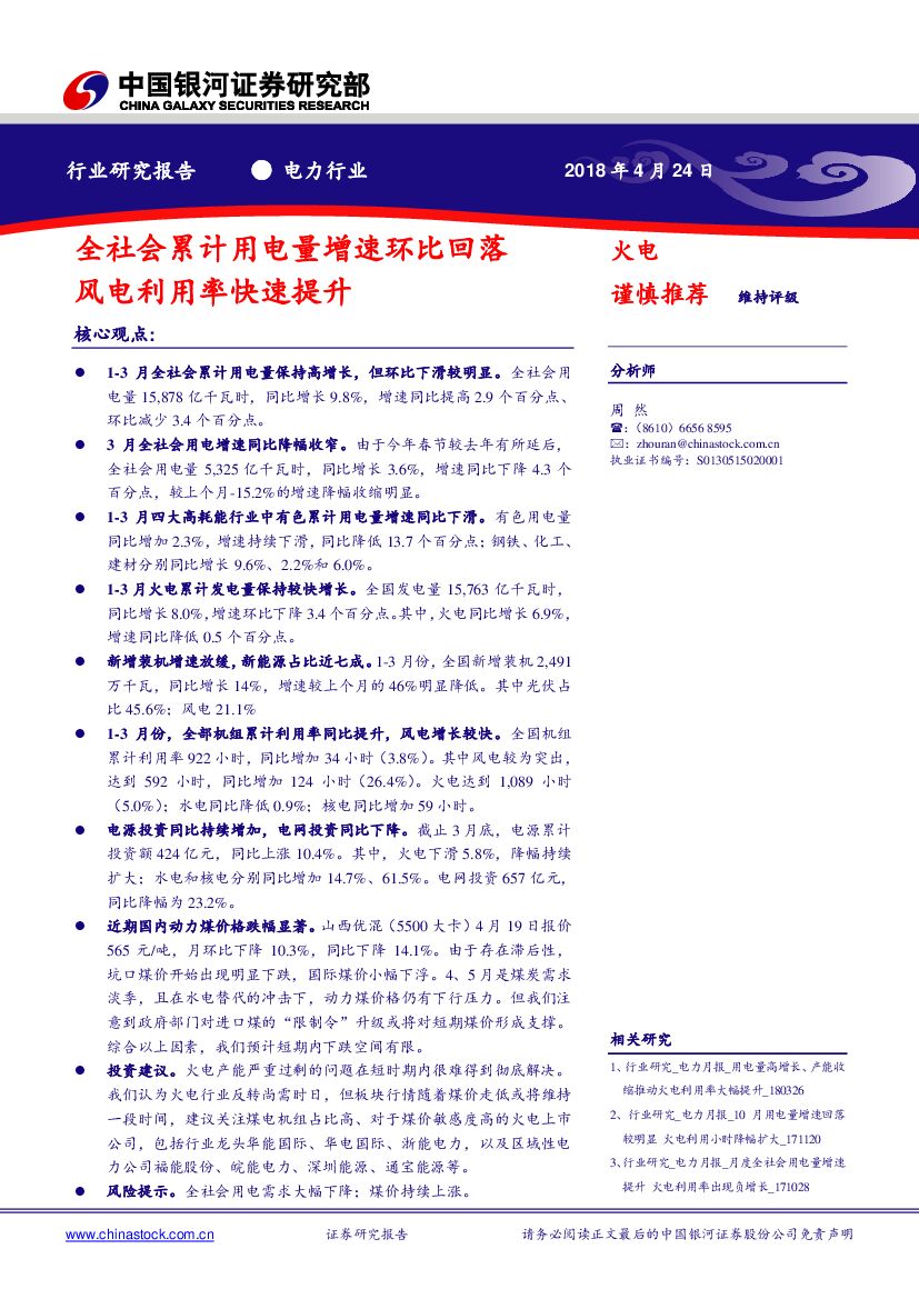 中国银河:电力行业研究报告:全社会累计用电量增速环比回落,风电利用率快速提升.pdf