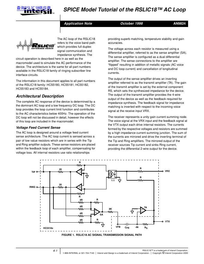 intersil AN9824 SPICE Model Tutorial of the RSLIC18 AC Loop 数据手册.pdf