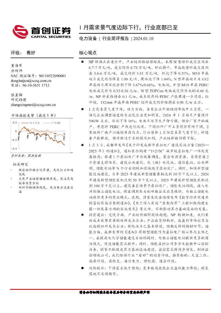 首创证券:电力设备行业简评报告:1月需求景气度边际下行,行业底部已至.pdf