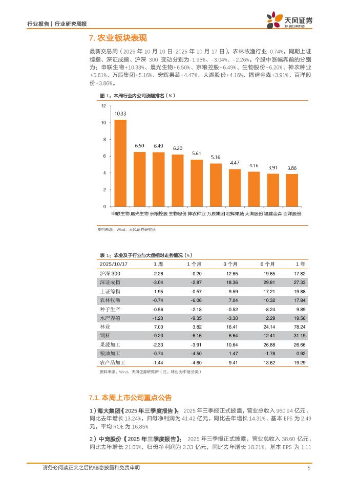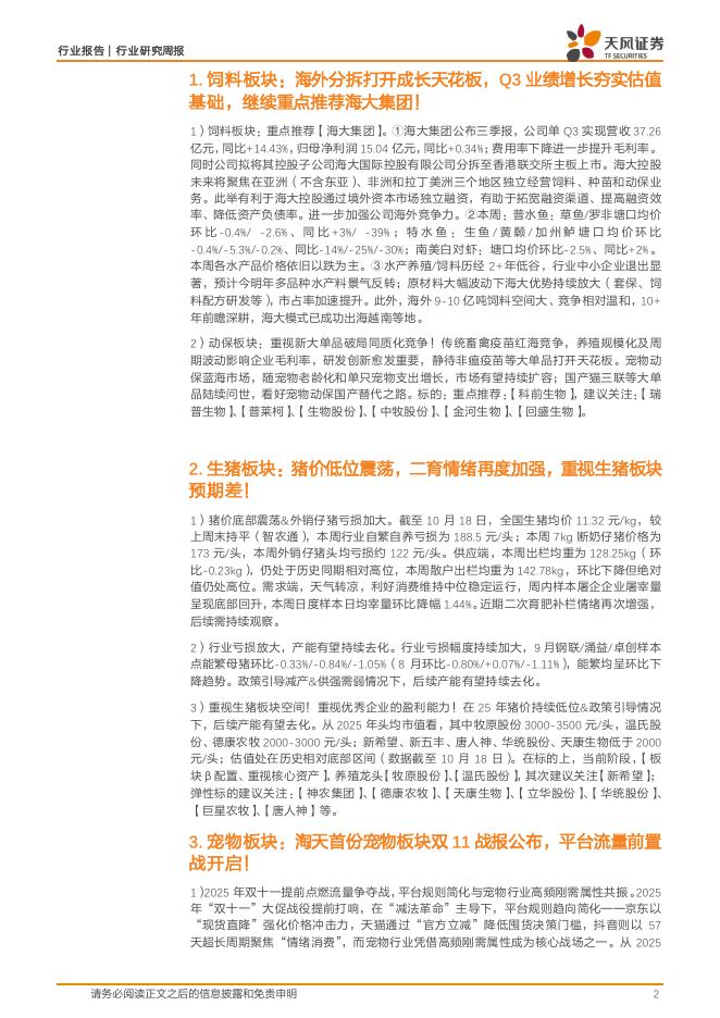天风证券:农林牧渔行业2025年第42周周报:如何解读海大三季报及海外业务拟拆分上市?.pdf