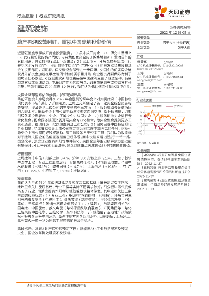 天风证券:建筑装饰行业研究周报:地产再迎政策利好,重视中国建筑投资价值.pdf