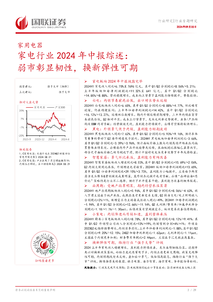 国联证券:家电行业2024年中报综述:弱市彰显韧性,换新弹性可期.pdf