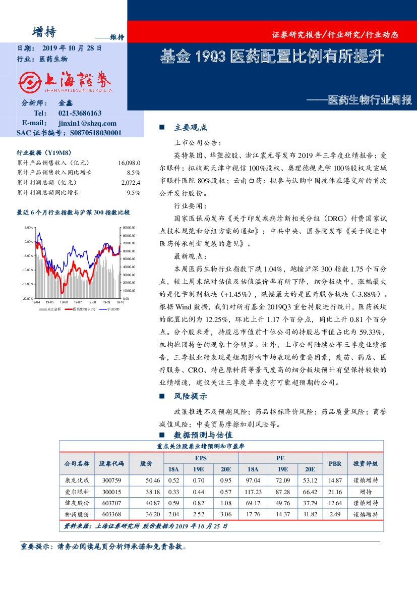 上海证券:医药生物行业周报:基金19Q3医药配置比例有所提升.pdf