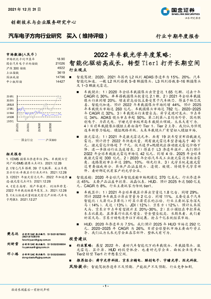 国金证券:汽车电子方向行业研究:2022年车载光学年度策略:智能化驱动高成长,转型Tier1打开长期空间.pdf