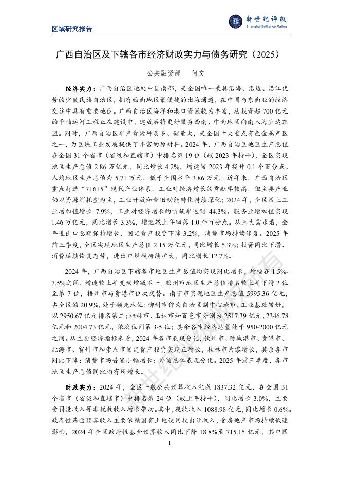 新世纪评级:广西自治区及下辖各市经济财政实力与债务研究(2025).pdf