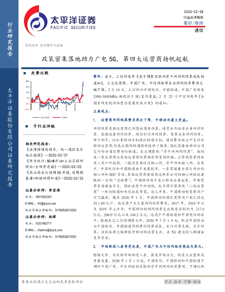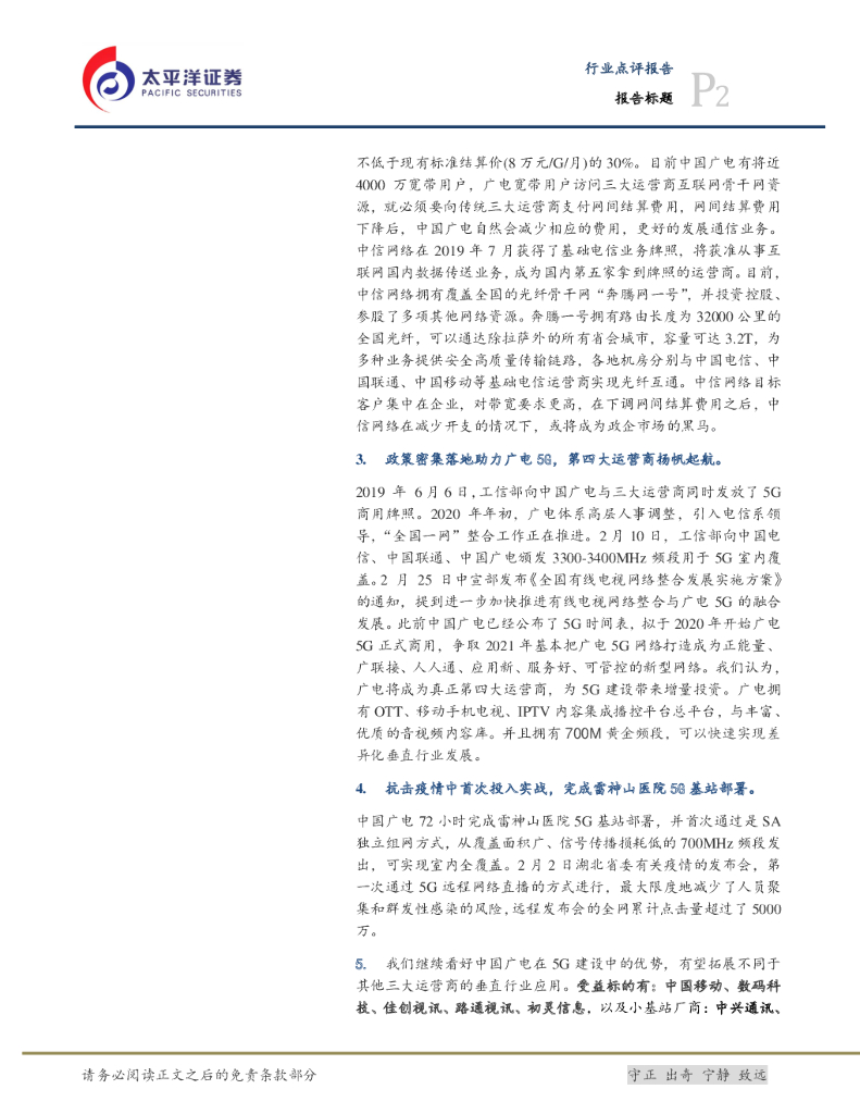 太平洋证券:通信:政策密集落地助力广电5G,第四大运营商扬帆起航.pdf