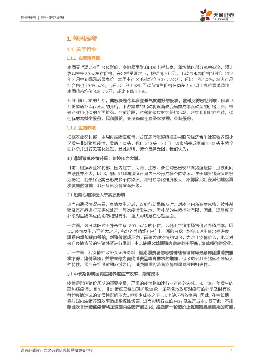 天风证券:农林牧渔2018第34周周报:山东洪水刺激菜、禽价格上涨,继续推荐通胀机会,重点推荐禽链+底部布局生猪板块!.pdf