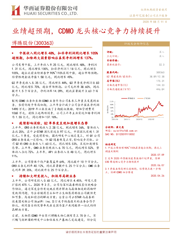 华西证券:博腾股份(300363)-业绩超预期,CDMO龙头核心竞争力持续提升.pdf