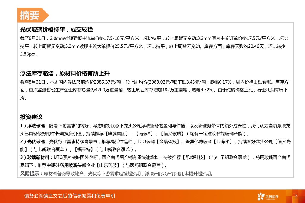 天风证券:玻璃玻纤行业研究周报:光伏玻璃价格持平,浮法价格下跌.pdf