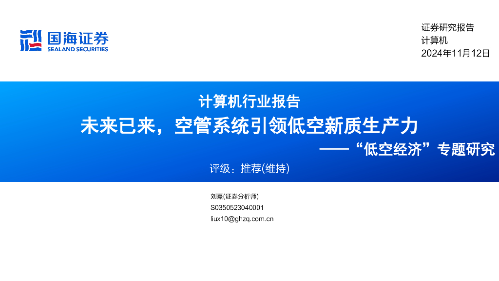 国海证券:计算机行业报告:“低空经济”专题研究-未来已来,空管系统引领低空新质生产力.pdf