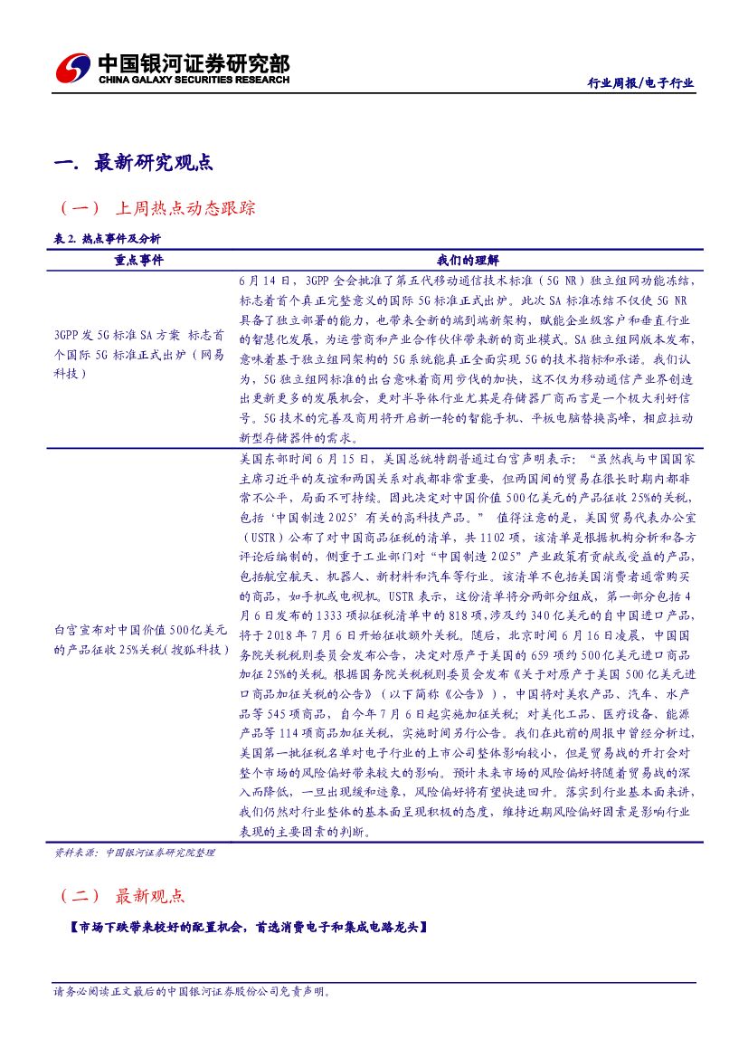 中国银河:电子行业周报:市场下跌带来较好的配置机会 首选消费电子和集成电路龙头.pdf