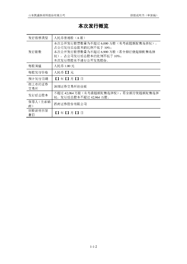 山东凯盛新材料股份有限公司深交所创业板IPO上市招股说明书.pdf