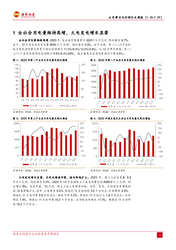 西南证券:公用事业与环保行业周报:全社会用电量维持高增,火电发电增长显著.pdf