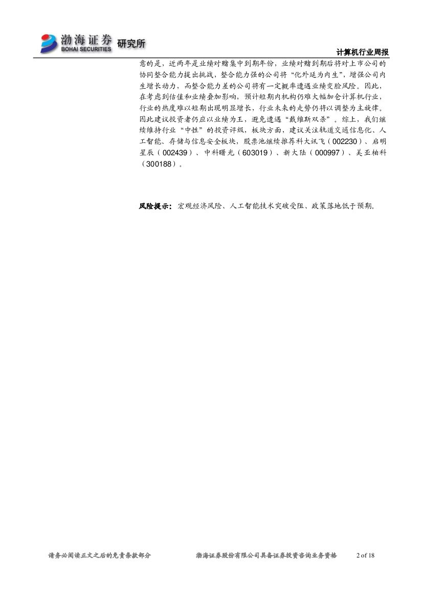 渤海证券:计算机行业周报:中报密集披露期,建议关注业绩出现“拐点”个股.pdf