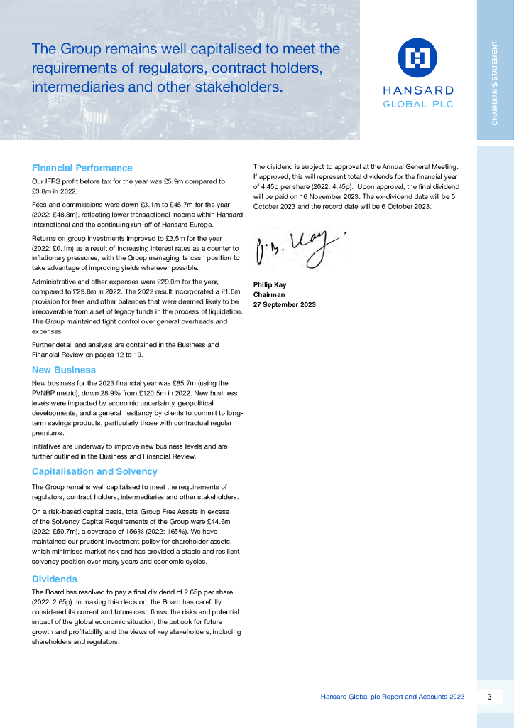Hansard Global Plc(HSD)2023财年年度报告(英文版).pdf