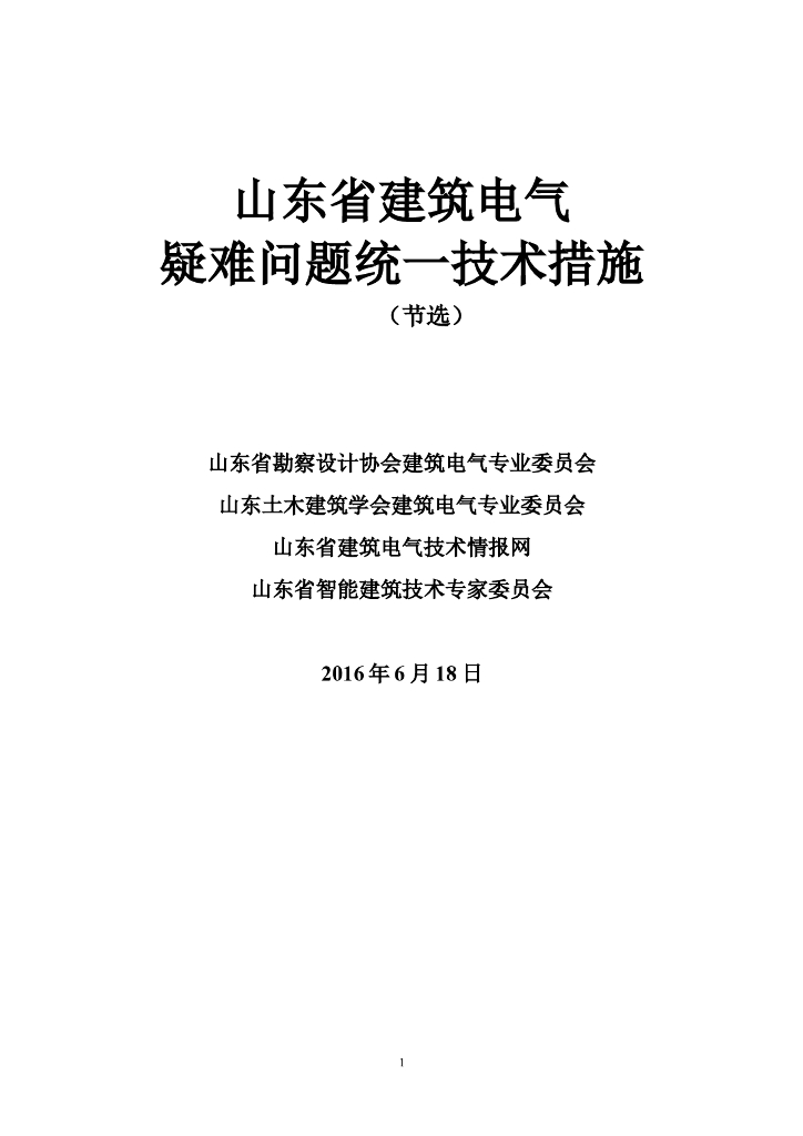 山东省建筑电气疑难问题统一技术措施.doc