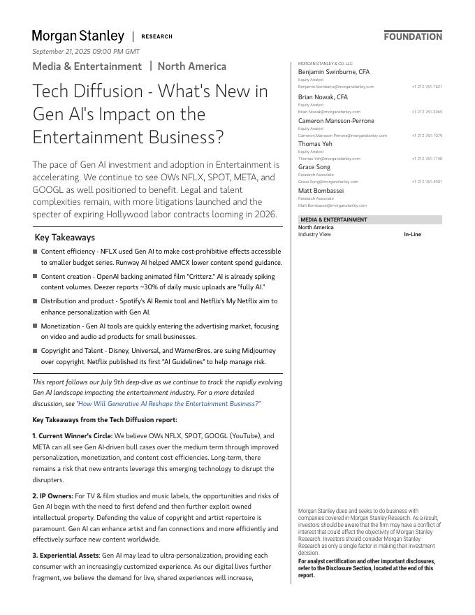 摩根士丹利:2025年生成式AI对文娱业影响的新动态报告(英文版).pdf