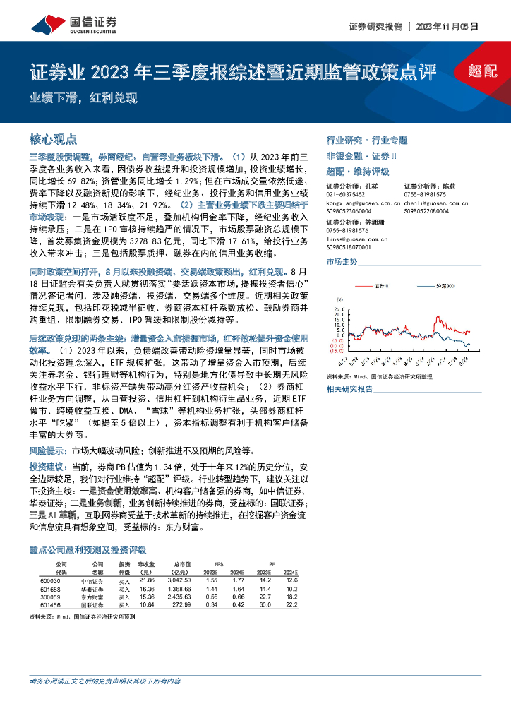 国信证券:证券业2023年三季度报综述暨近期监管政策点评:业绩下滑,红利兑现.pdf