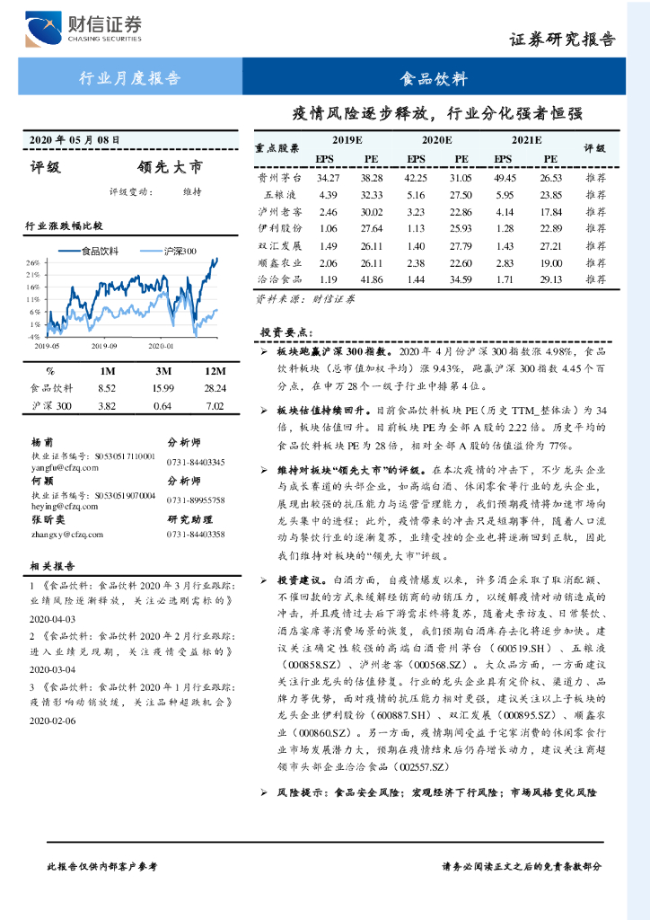 财信证券:食品饮料行业月度报告:疫情风险逐步释放,行业分化强者恒强.pdf
