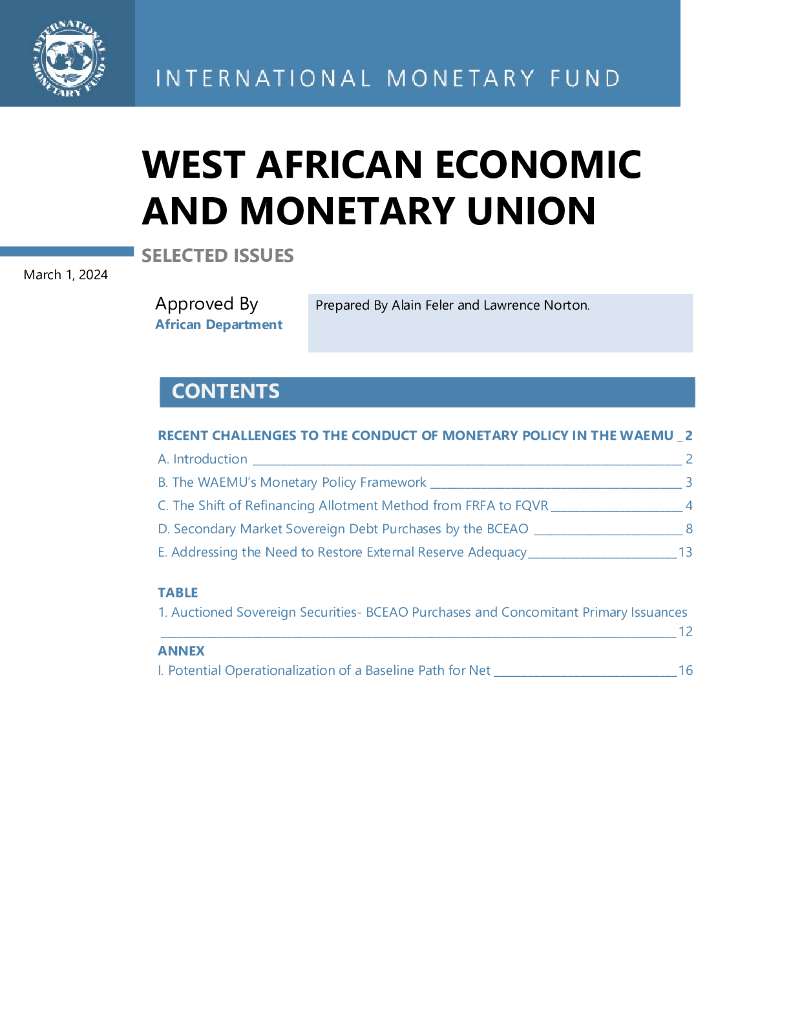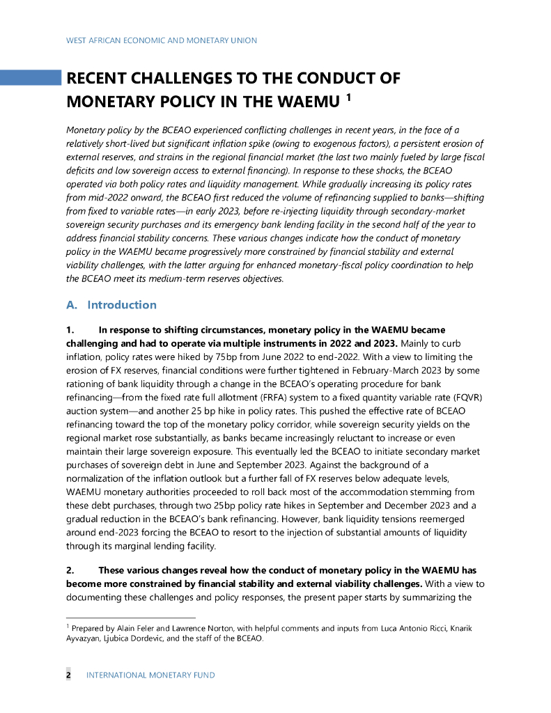 国际货币基金组织:2024西非经货联盟货币政策行为最近面临的挑战报告(英文版).pdf