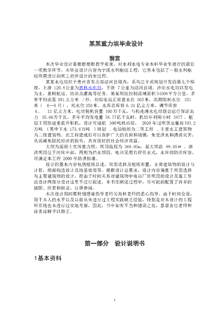水利枢纽重力坝毕业设计(Word,36页).doc