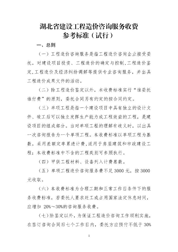 湖北省建设工程造价咨询服务收费参考标准.pdf