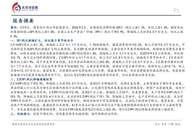 太平洋证券:2月通胀数据点评:春节错期影响下,CPI环比超预期回升-260311.pdf