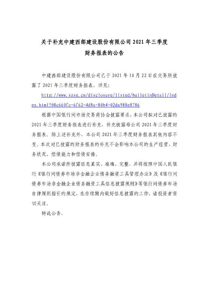 关于补充中建西部建设股份有限公司2021年三季度财务报表的公告及更正后的文件.pdf