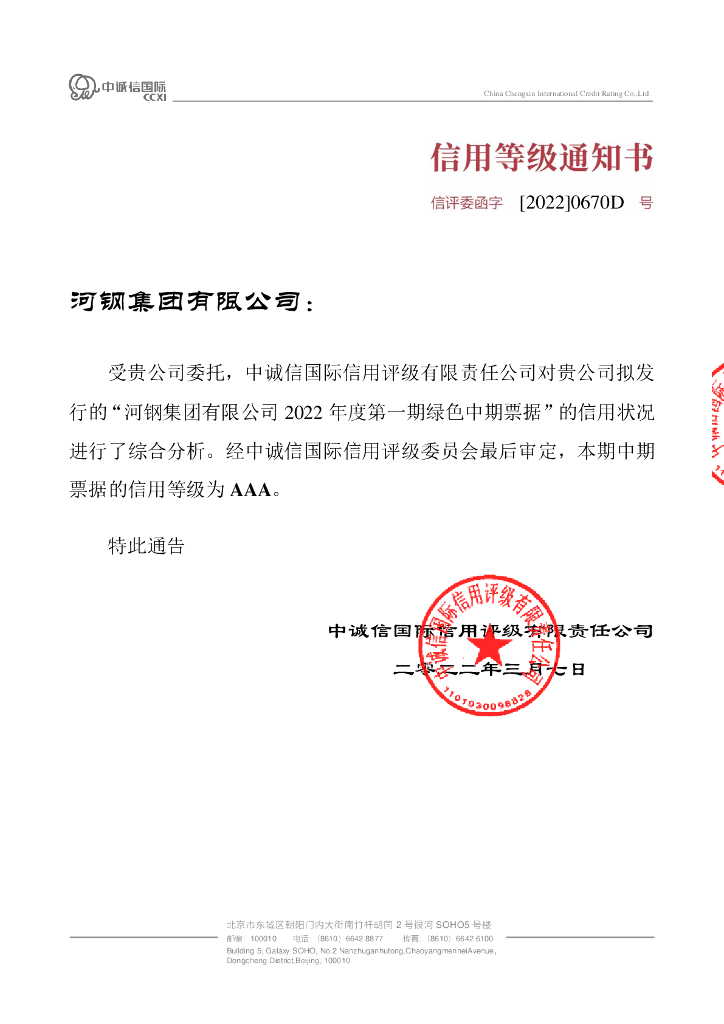 中诚信:河钢集团有限公司2022年度第一期绿色中期票据信用评级报告.pdf