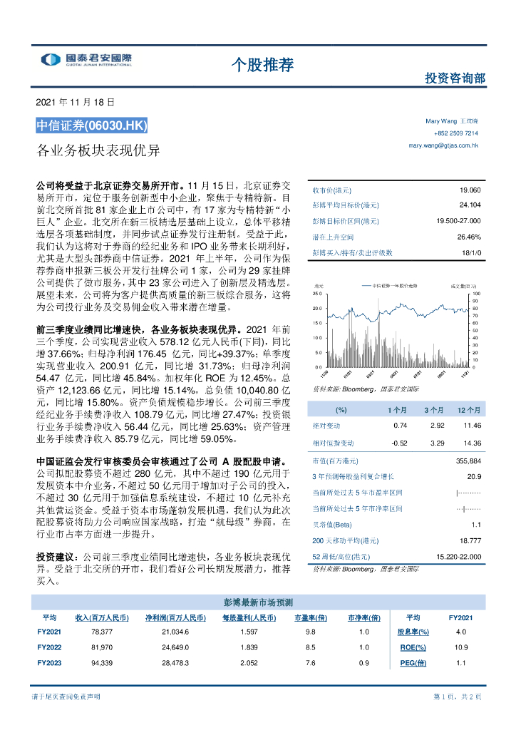 国泰君安证券(香港):中信证券(06030)港股公司研究报告-各业务板块表现优异.pdf