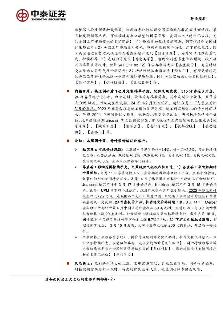 中泰证券:轻工制造及纺织服装行业周报:361度23业绩表现亮眼,芬兰罢工影响纸浆价格.pdf
