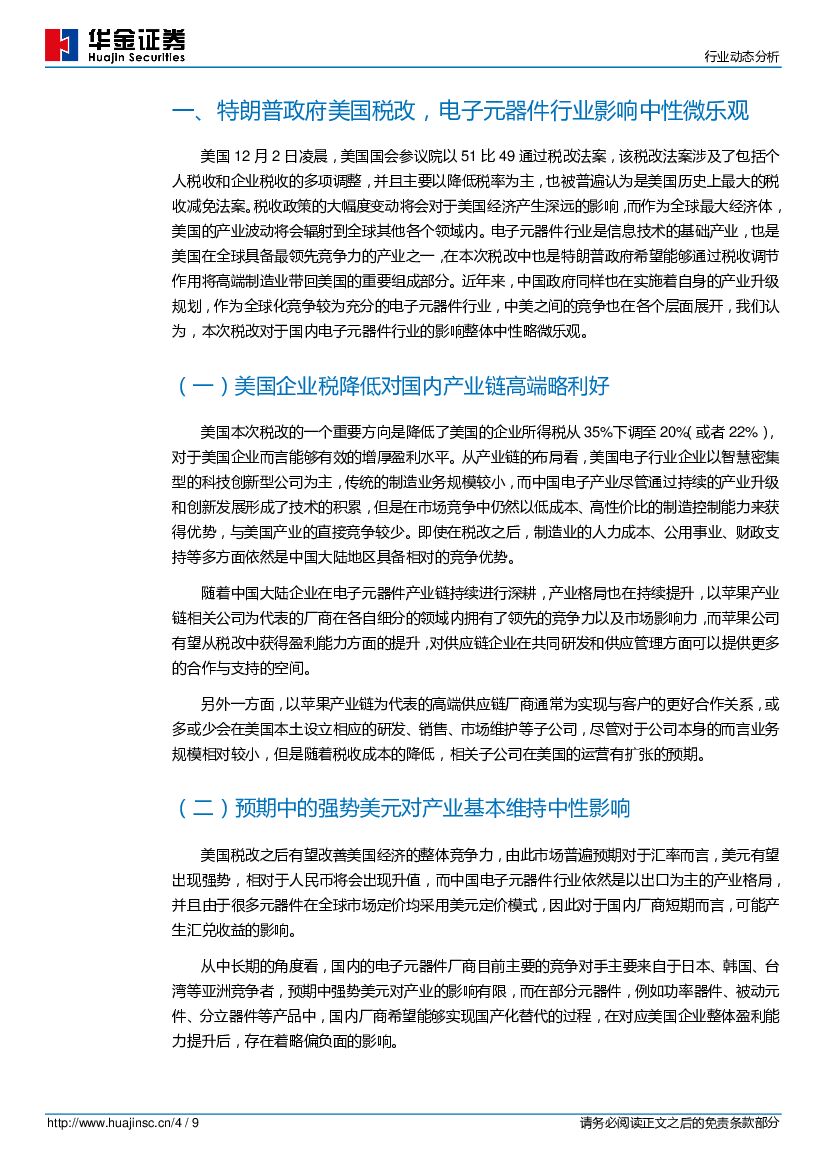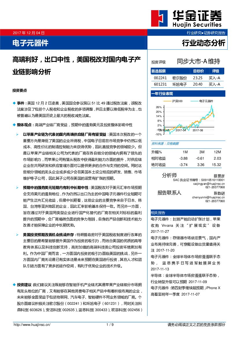 华金证券:电子元器件行业动态分析:高端利好,出口中性,美国税改对国内电子产业链影响分析.pdf