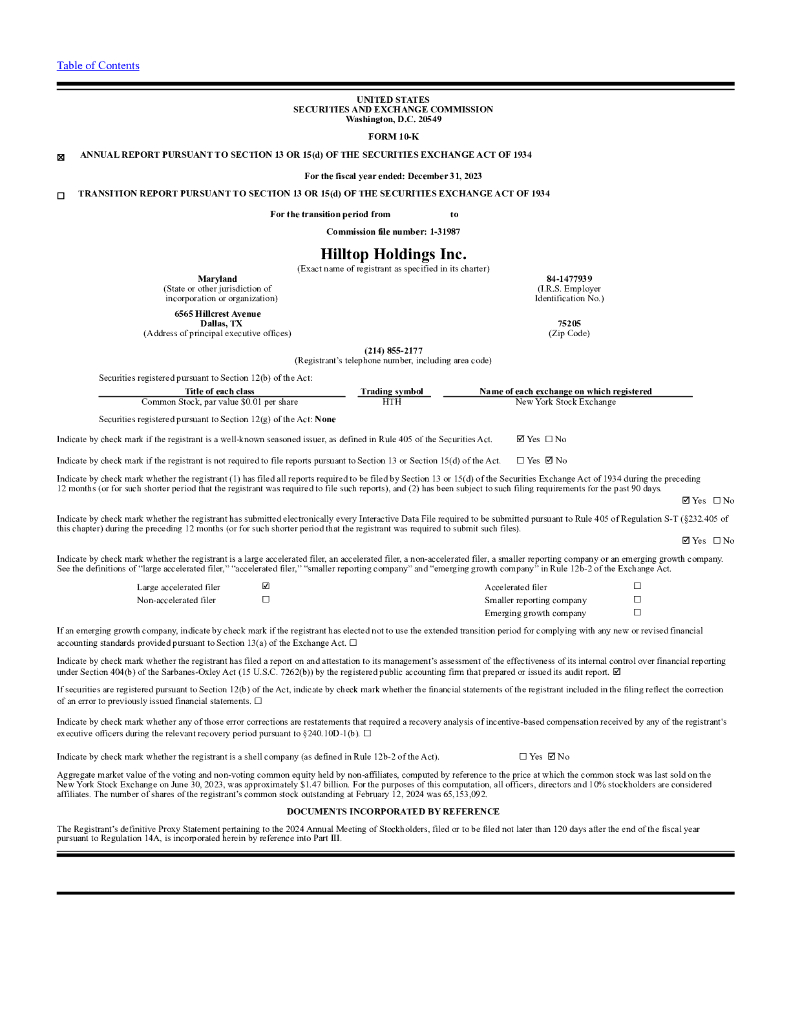 Hilltop Holdings Inc.(HTH)2023财年年度报告(英文版).pdf