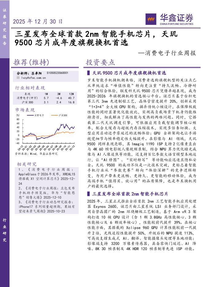 华鑫证券:消费电子行业周报:三星发布全球首款2nm智能手机芯片,天玑9500芯片成年度旗舰换机首选.pdf