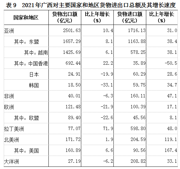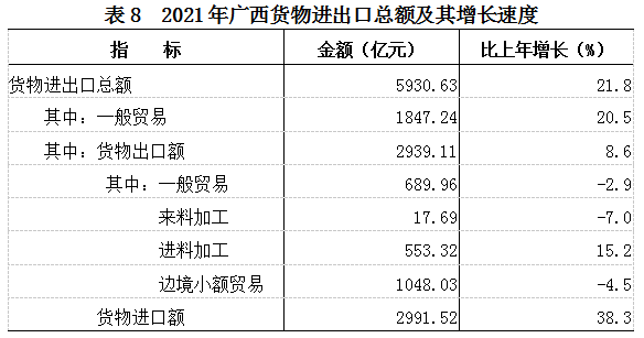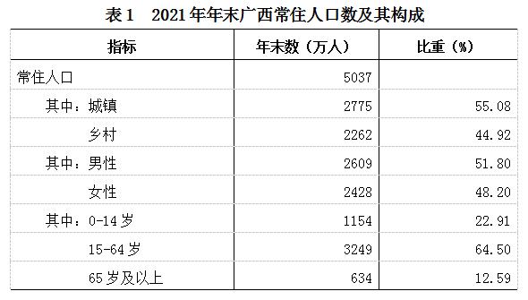 广西壮族自治区2021年国民经济和社会发展统计公报