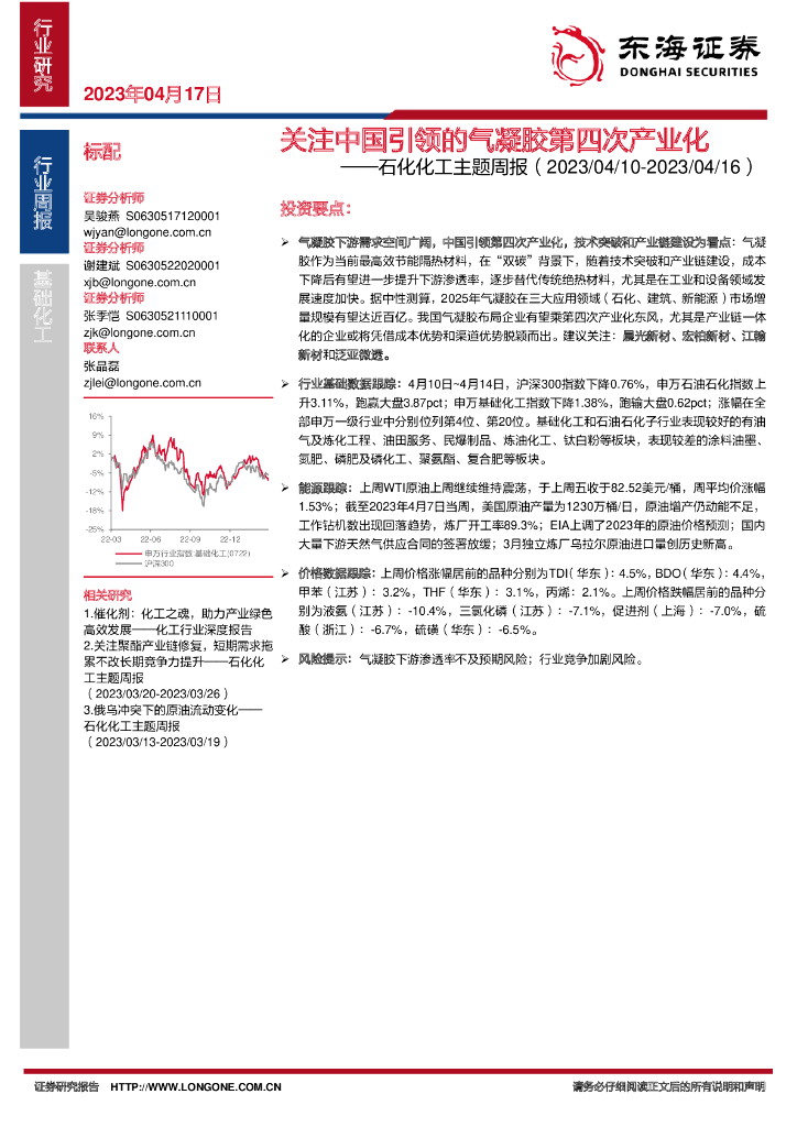 东海证券:石化化工主题周报:关注中国引领的气凝胶第四次产业化.pdf