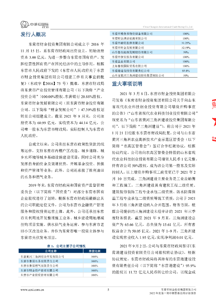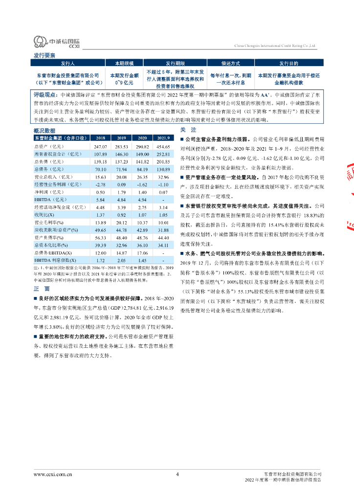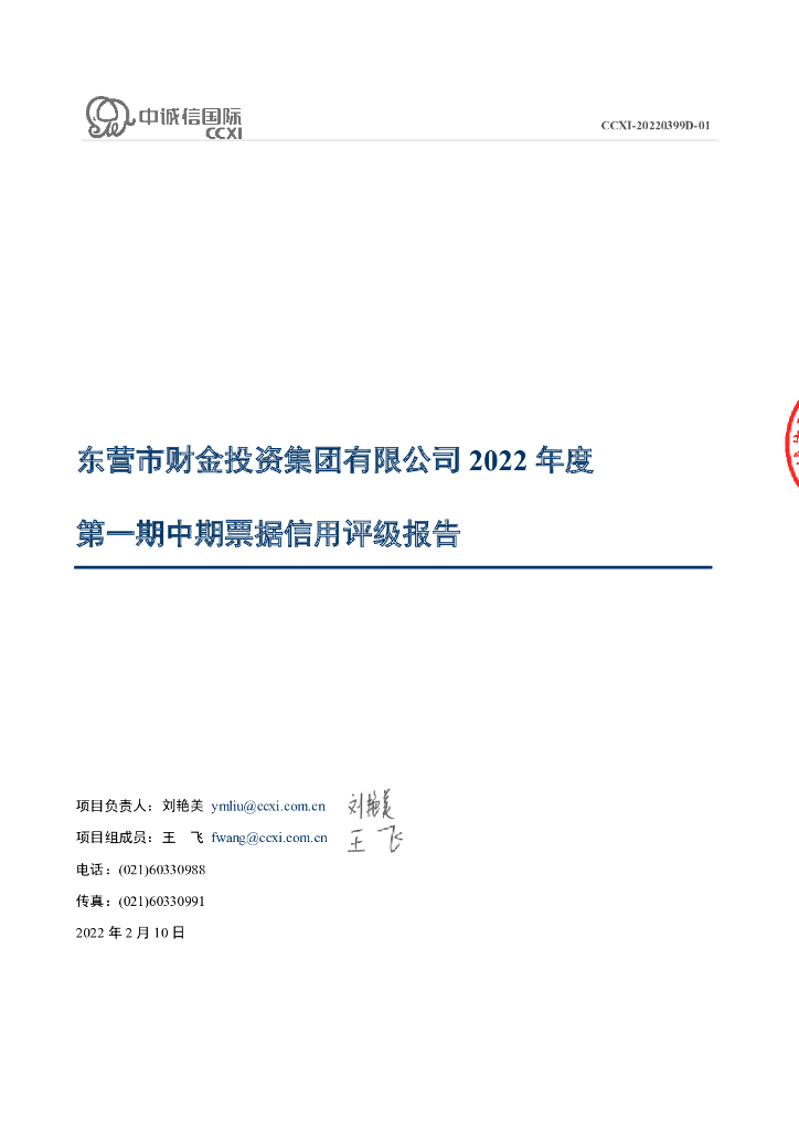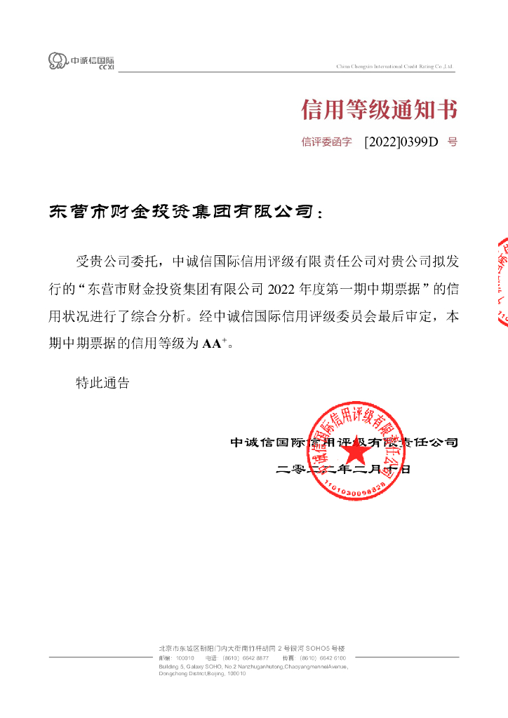 中诚信:东营市财金投资集团有限公司2022年度第一期中期票据信用评级报告.pdf