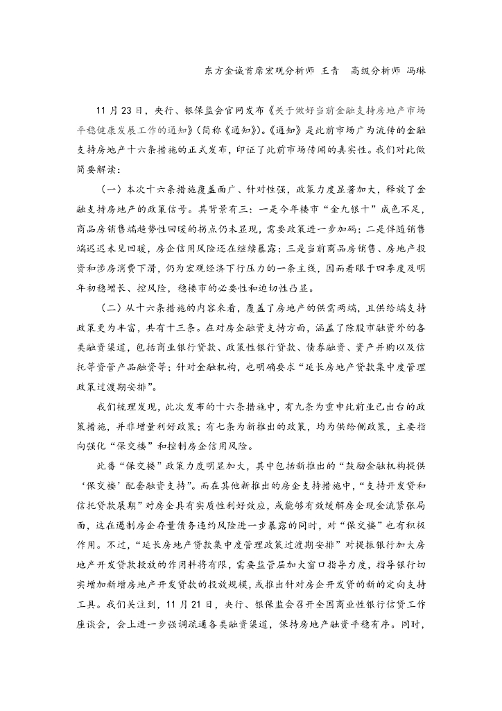 东方金诚:《关于做好当前金融支持房地产市场平稳健康发展工作的通知》解读.pdf