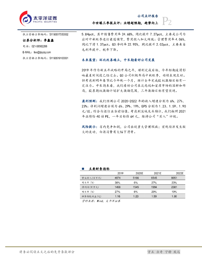 太平洋证券:今世缘三季报点评:业绩超预期,趋势向上.pdf