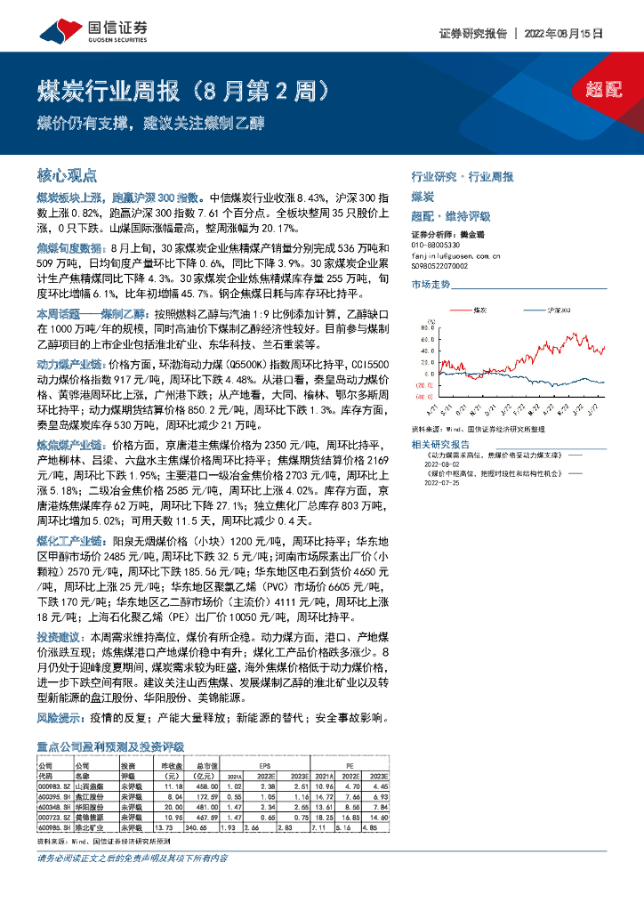 国信证券:煤炭行业周报(8月第2周):煤价仍有支撑, 建议关注煤制乙醇.pdf