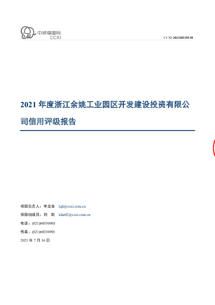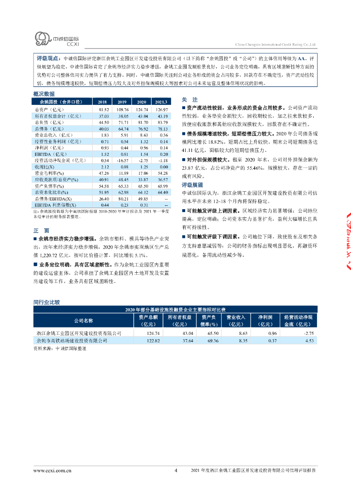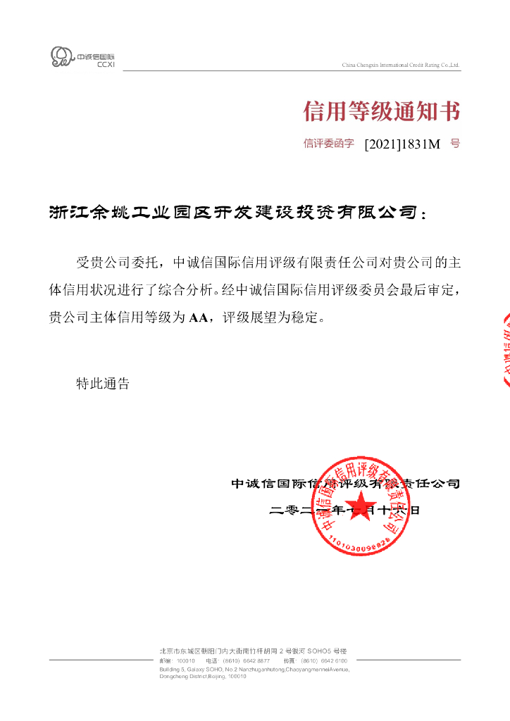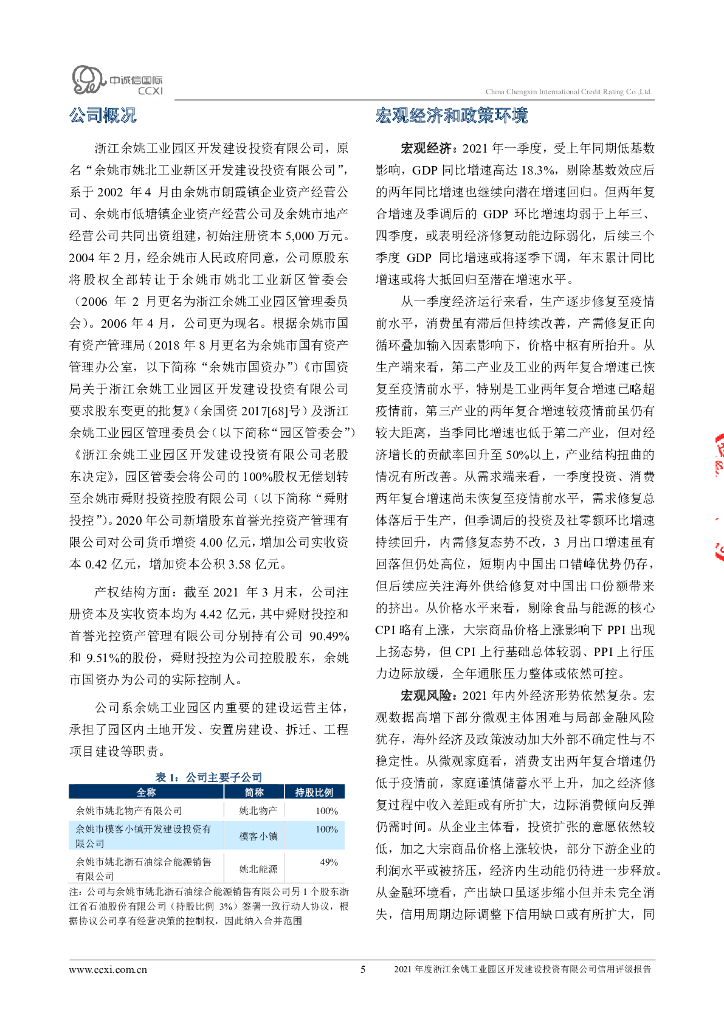 中诚信:浙江余姚工业园区开发建设投资有限公司2021年度信用评级报告.pdf