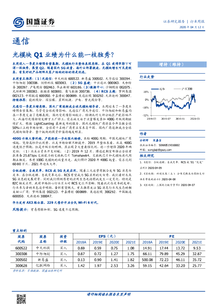 国盛证券:通信行业周报:光模块Q1业绩为什么能一枝独秀?.pdf