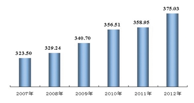 图4 2007-2012年全区粮食产量 单位:万吨