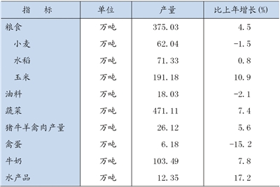 全年粮食播种面积1242.41万亩,比上年减少2.8%,粮食总产量375.03万吨,增长4.5%,实现连续九年增产,总产再创历史新高。油料播种面积132.57万亩,减少0.3%。蔬菜播种面积167.36万亩,增长4.0%。