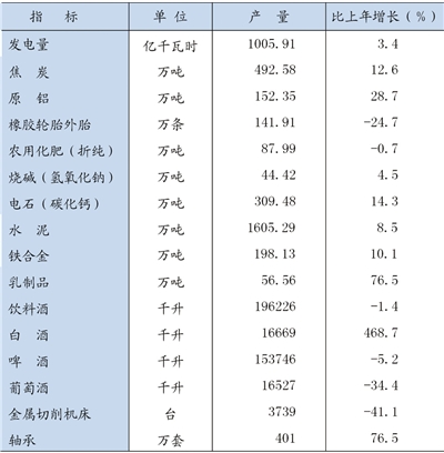 全年全部工业增加值878.64亿元,比上年增长13.5%。全年规模以上工业实现工业增加值818.24亿元,比上年增长14.0%。在规模以上工业增加值中,轻工业增加值98.45亿元,增长8.6%;重工业增加值719.79亿元,增长14.8%。