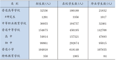 年末全区各级各类学校2796所,教职工91297人。其中,各类普通高校16所,中等职业教育学校34所,普通中学314所,初中阶段毛入学率100.94%,普通小学1896所,小学学龄儿童入学率99.68%,特殊学校8所。全区共有幼儿园527所,在园幼儿160254人。