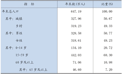 年末全区常住人口647.19万人。其中,城镇人口327.96万人,占常住人口比重50.67%,比上年提高0.85个百分点。人口出生率为13.26‰,比上年下降0.39个千分点;死亡率为4.33‰,比上年下降0.35个千分点;人口自然增长率为8.93‰,比上年下降0.04个千分点。