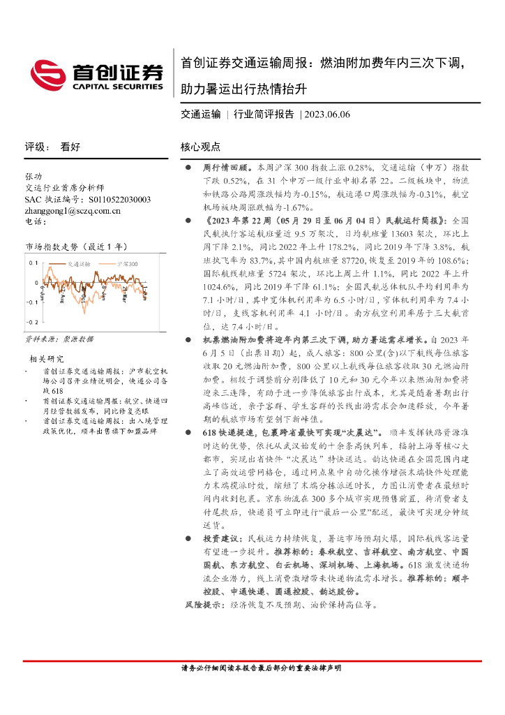 首创证券:交通运输周报:燃油附加费年内三次下调,助力暑运出行热情抬升.pdf