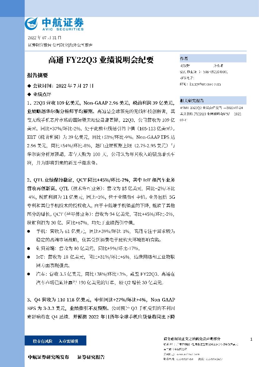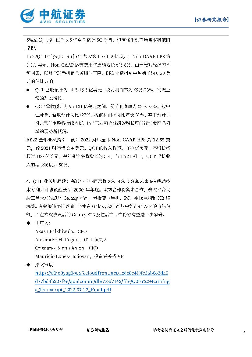 中航证券:电子行业:高通FY22Q3业绩说明会纪要.pdf